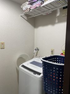 吊り戸の高さは、洗濯機の蓋に当たらない様に高さを調整しました。