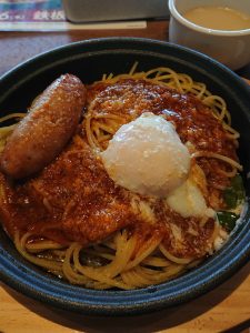 さらにお店で見たメニュー写真で鉄板パスタのミートソースに乗っているソーセージが食べたくて2週間後に再訪問。