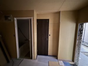 2026年1月31日2026年2月1日 フソーシステムスタッフ アパート火災復旧工事, キッチン, トイレ, 住設, 洗濯機パン 福岡市 アパート火災復旧工事 アパートオーナー様よりアパート1階1室の火災現場の復旧工事のご依頼がありました。 作業中 フロア材~壁~建具取付 住設 次回完工です。