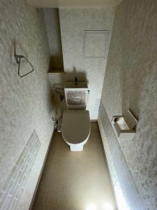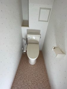 クロスとCFを張り替えたことで、トイレ本体だけでなく空間全体がリフレッシュされました。