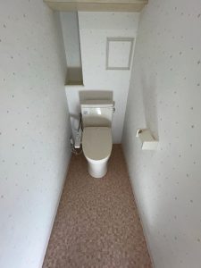 トイレは長年使用されており、内装のクロスや床のクッションフロアにも経年劣化が見られました。