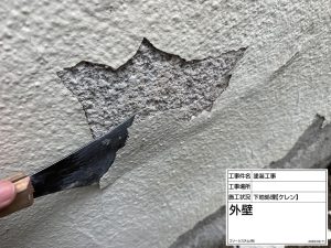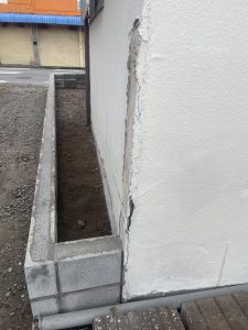 2026年2月15日 フソーシステムスタッフ 外壁・屋根, 外壁ひび割れ, 外壁塗装, 外壁部分補修 久留米市 H様邸 外構をさせて頂きましたH様邸にて、ブロックを解体して積み直ししてフェンスをお取り付けしたら外壁の老朽化が目立つ様になったので補修して欲しいとのご依頼でした。 割れやひび割れが多く見られたので、補修をして塗装をさせて頂きました。 before 作業中 下処理(クラック補修・ケレン作業) 下塗り 模様付け 中塗り 上塗り after 心配だった壁への雨水の染み込みも解消されご安心されておりました。