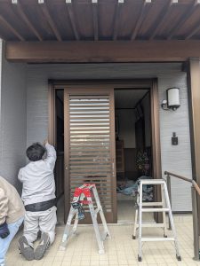 2026年2月20日 フソーシステムスタッフ カバー工法, スピード施工, ドアリモ, リノベ, リフォーム, 玄関引戸, 簡単施工, 防犯 久留米市 N様邸 玄関引戸のガラスが割れ、防犯上の心配からお取替えの相談がありました。 経年劣化による錆、汚れ、引戸が重い…などなど。 Before 施工中 壁は壊さず1日でリフォーム完了! きれいにおさまるように調整をします。 After 以前と同じデザインか、全く違うデザインかとずいぶん悩まれましたが、見慣れたデザインが落ち着くと決められました。 お盆に帰省する家族が気付くかな?と笑っておられました。