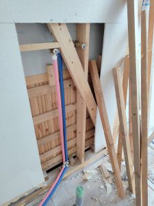 久留米市 増築工事(内部編) 2023年11月19日2023年11月27日 リフォーム密着24時 フソーシステムスタッフ S様邸増築工事, ウレタンフォーム, クロス, リフォーム, ロックウール, 久留米市, 内装, 増築, 大工工事, 床断熱材, 断熱工事, 配管工事 久留米市 S様邸 増築工事(内部編) 施工中 壁・天井下地組の後、断熱材(ロックウール厚100㎜)を外気に接する面に敷き詰め 床断熱材(ウレタンフォーム)を敷き込み~床フロア張り(二重張)にしました。 電気配線・設備配管の逃がし後、ボード張り~枠塗装~ボード継手のパテ処理~ 天井・壁クロス仕上げ~キッチンパネル張りとすすみました。次はキッチン・照明器具の取付となります。 少しずつ完成に近づいてきました。 続きを読む...