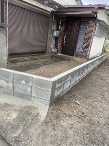 お客様より、ブロックの老朽化や道路際なので防犯上にて門柱から人の出入りを防止したいとのご相談でした。