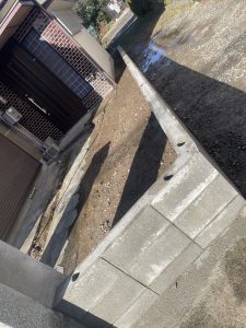 ②隣地境界ブロックは傾きが酷いので解体ブロック積み直しの上フェンス取付