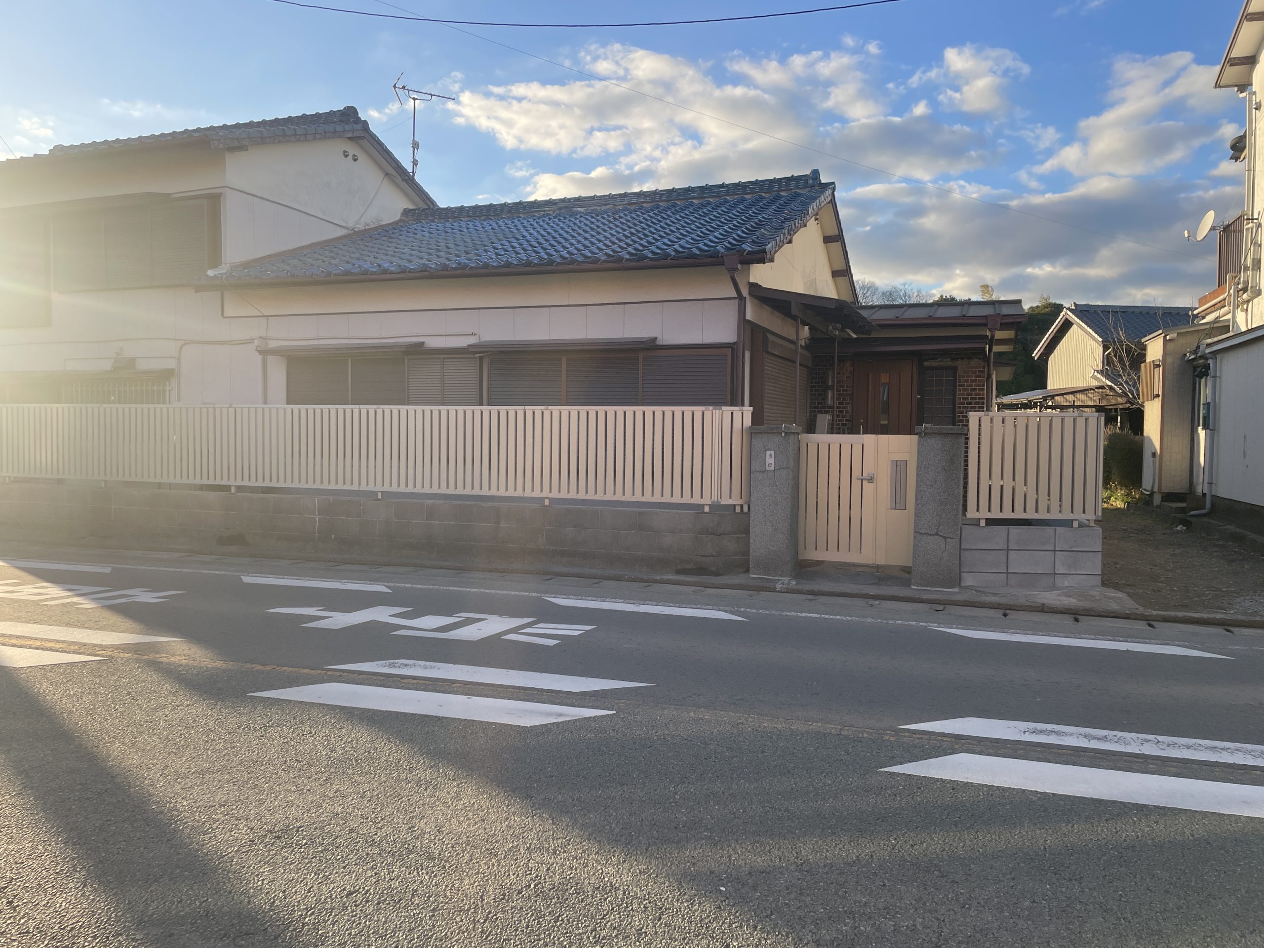 久留米市 H様邸 お客様より、ブロックの老朽化や道路際なので防犯上にて門柱から人の出入りを防止したいとのご相談でした。 以下のご提案をさせて頂きました。 ①道路側のブロック上部解体による減段後フェンス取付 ②隣地境界ブロックは傾きが酷いので解体ブロック積み直しの上フェンス取付 ③門柱に機能門扉取付 作業中 フェンス工事 機能門扉 シンプレオ機能子扉TS2型 after スッキリしたデザインで宅内も明るくなり、しっかりした門扉で安全性も上がりお客様もお喜びです。 !!お知らせ!! 当社ショールームにて新春リフォーム大感謝祭を1月10日、1月11日開催いたします。 お誘いあわせの上ご来店お待ちしております。