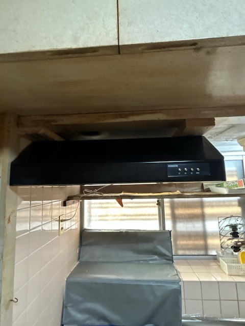 久留米市 S様邸 45年以上前に設置の平型レンジフードが故障したため、取替たいとのご相談を受けました。 古いから、取替えができないのではないかと半ば諦められており…。 Before 長年ご使用の為、固着した油は普段のお掃除では落とせなくなっていました。 施工中 After ご心配はいりません!! 近年ではあまり見ない形状のレンジフードですが、取替え可能です。吸い込みが断然良くなった!とお喜びです。 古くなったレンジフードのお取替えはフソーシステムまでご相談ください。